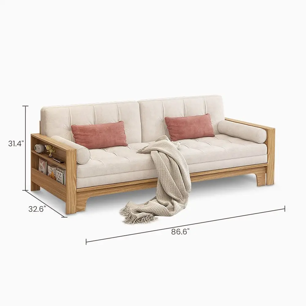 Multi-Functional Wooden Sofa Cum Bed with Side Storage
